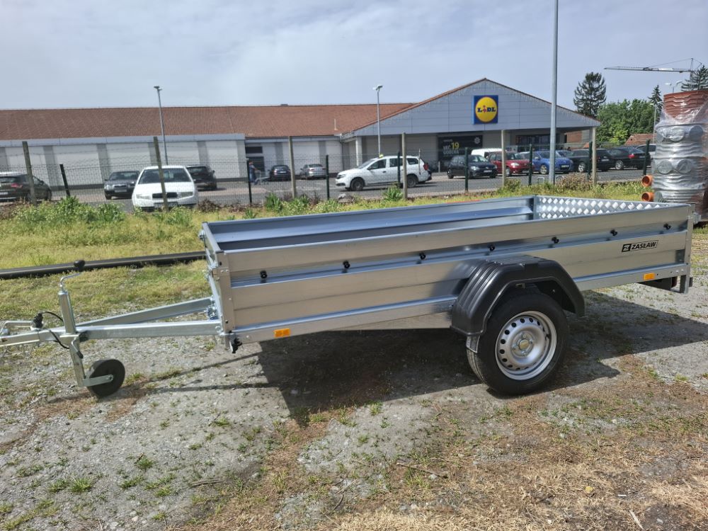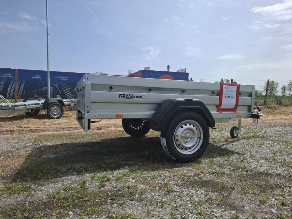 Poljska aluminijska prikolica ZASLAW 265SU dolazi u kiper varijanti sa ojačanom stražnjom stranicom, trećim kotačem i LED svjetlima. Prikolica je dimenzija 265x132x35 cm. Ima ukupnu nosivost do 750 kg, a može se nadograditi s ceradom i arnjevima do jedan metar visine.